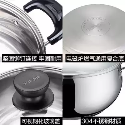 Supor soup pot 304 stainless steel composite bottom thickening household milk pot gas induction cooker porridge pot cooking pot