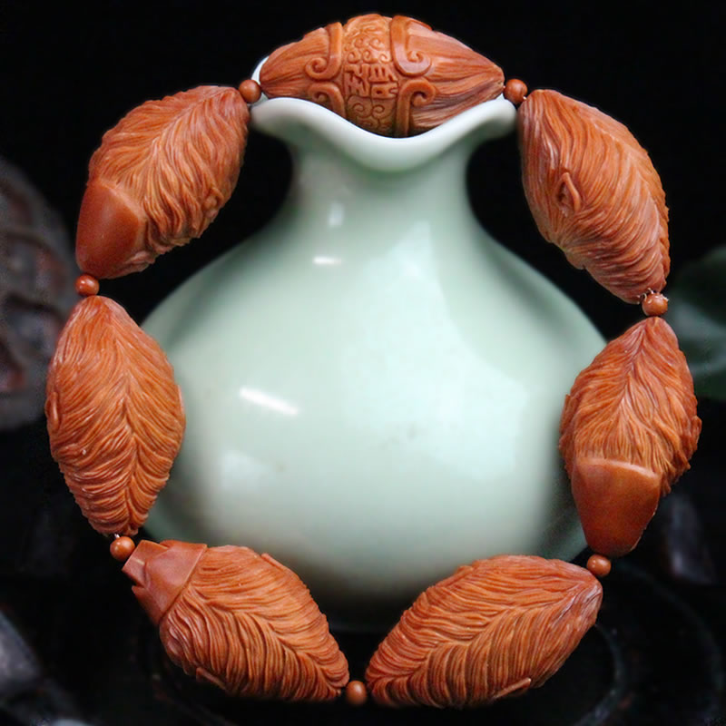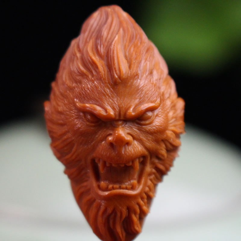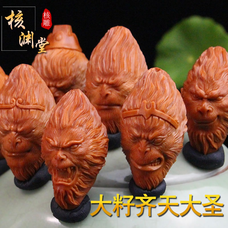 Zhoushan Sugong pure hand carved olive core carving Qi Tian DaSheng Sun Wukong monkey head bracelet olive Hu Wen play hand string