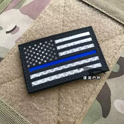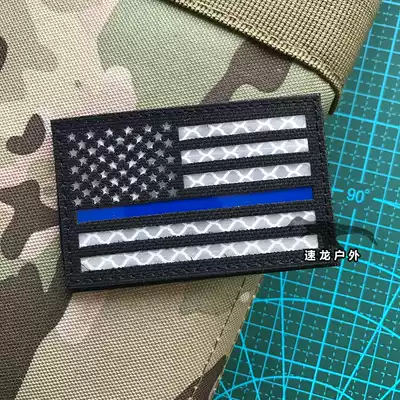 Reflective Blue Line American Flag Armband Laser Hollow Pattern Blue Line Morale Seal Flag Velcro