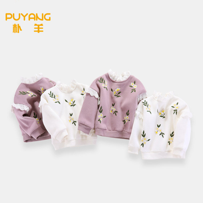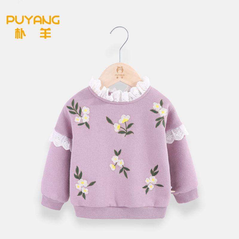 Baby girl autumn sweater T-shirt children fleece thick cotton T plus velvet thick top girls clothing little girl winter bottoming shirt 2