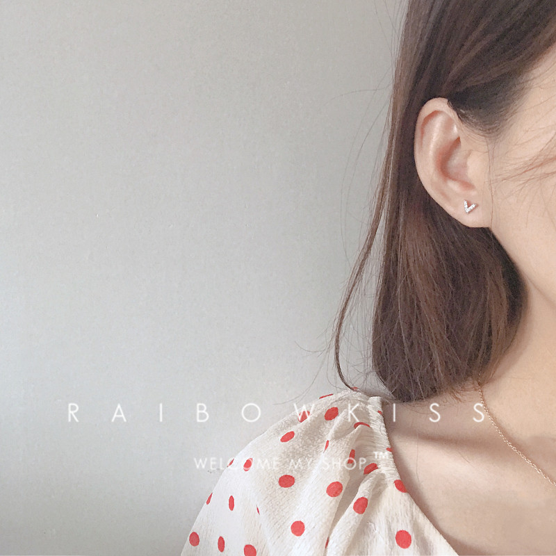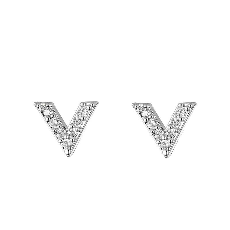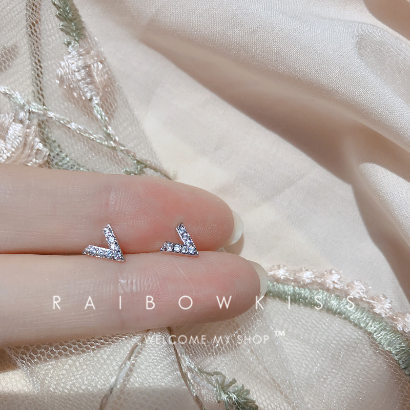 Sleep without picking simple geometric letter V ear needle S925 sterling silver diamond super flash temperament earrings ins wind student