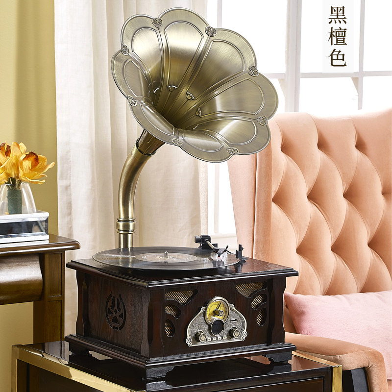 Van Tiztia Classical Gramophonic Machine Retro Black Adhesive Record Machine Low Sound Cannon Electric Record Machine Living Room Home Sound Pendulum lp