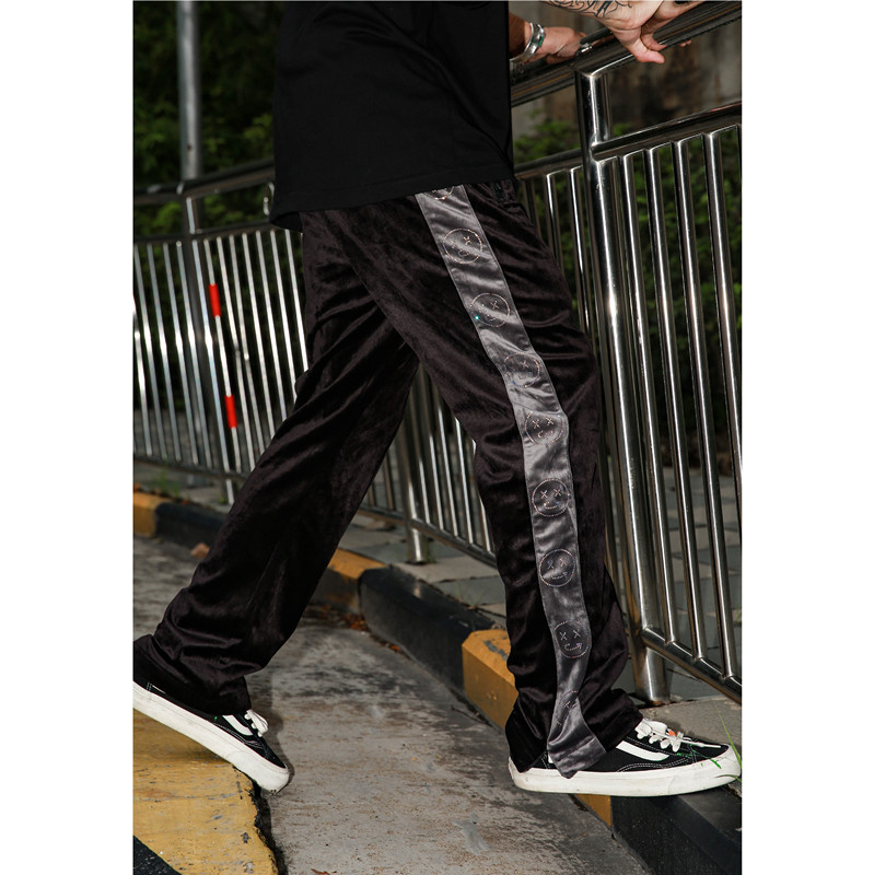 EVILNIGHT Hip Hop Street Dance Tide Card Side Stripe Scalping Straight Cylinder Casual Pants Loose 100 Hitch Velvet Long Pants