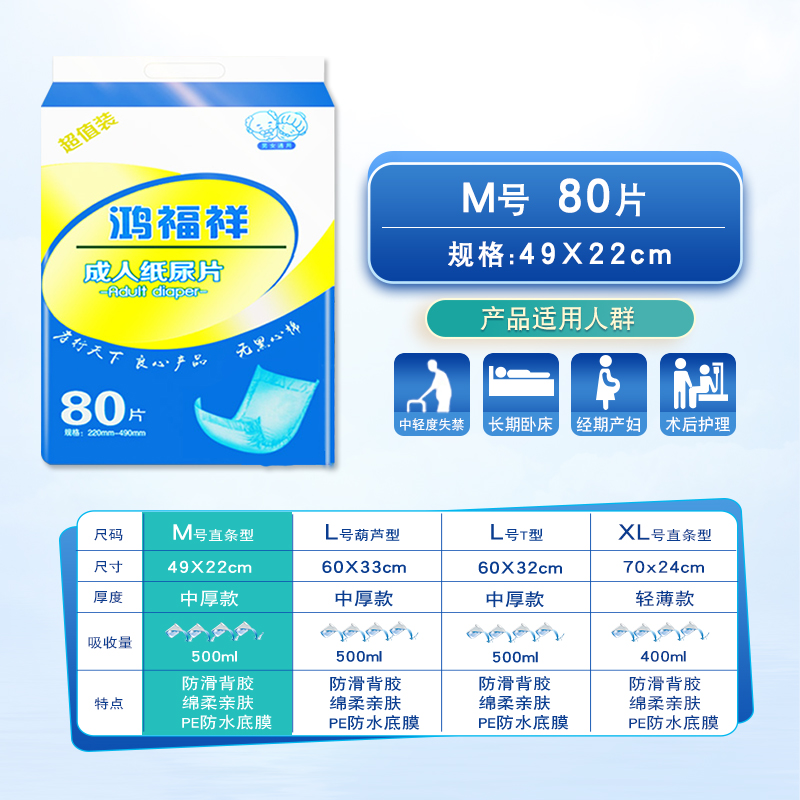 Hong Fuxiang adult diaper adult urine non wet old adult diaper U type 80 tablet for adult men's diaper