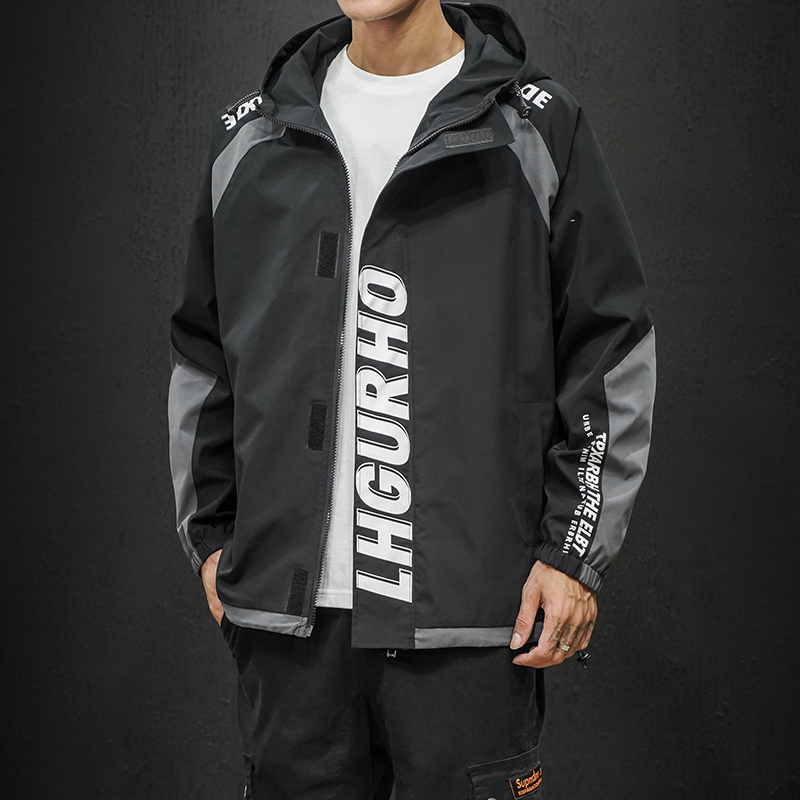 Frock jacket Men's spring and fall Tide Cards Great Size Loose Jacket Korean version trendy ruffling handsome with cap baseball clothes blouses