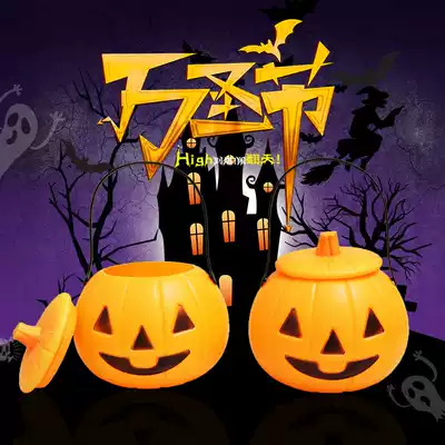 Halloween portable pumpkin lantern portable pumpkin bucket Halloween decorative props with lid pumpkin bucket children candy jar
