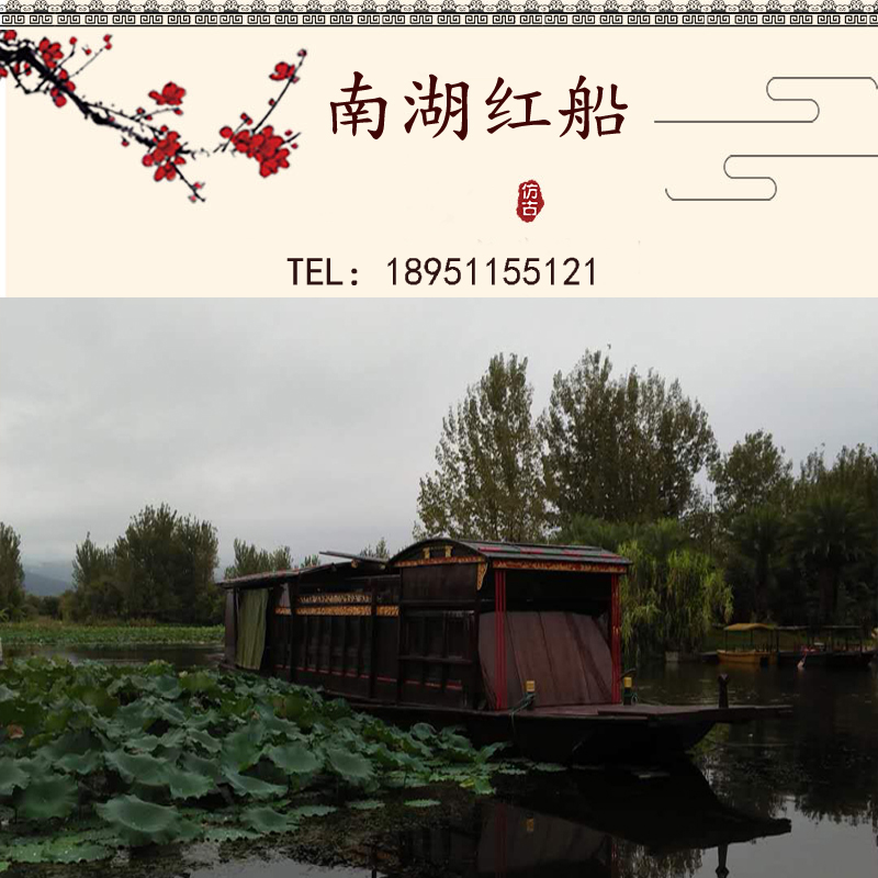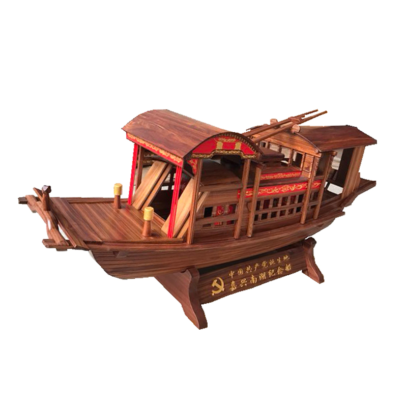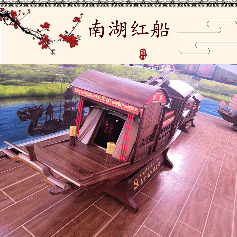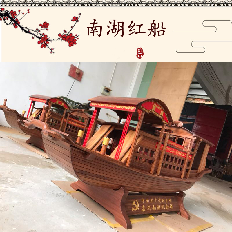 Jiaxing Nan Lake Red Boat Wooden Boat View Light Ship Small Wooden Boat Imitation Ancient Dining Boat Landscape Decoration Painting Boat Model Down-to-water-Taobao