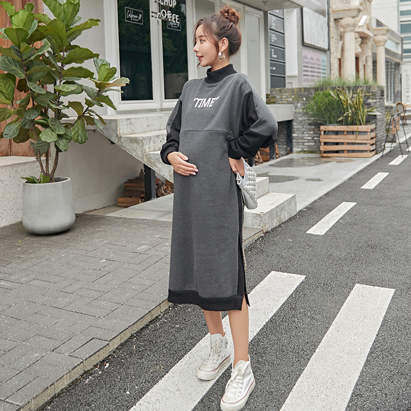 Spring maternity dress 2021 new nursing cotton loose sweater long over-the-knee large size out wear