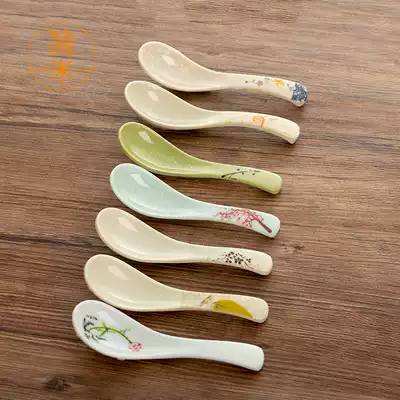 (10 packs)A5 melamine spoon Noodle bowl spoon Drop-resistant long handle curved hook soup spoon Soup spoon turtle shell spoon tableware