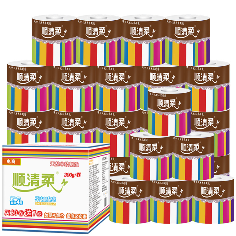 Smooth and soft rainbow outlet fitted with core drum toilet paper toilet paper native wood pulp natural no incense four floors 27 volumes 5 4kg