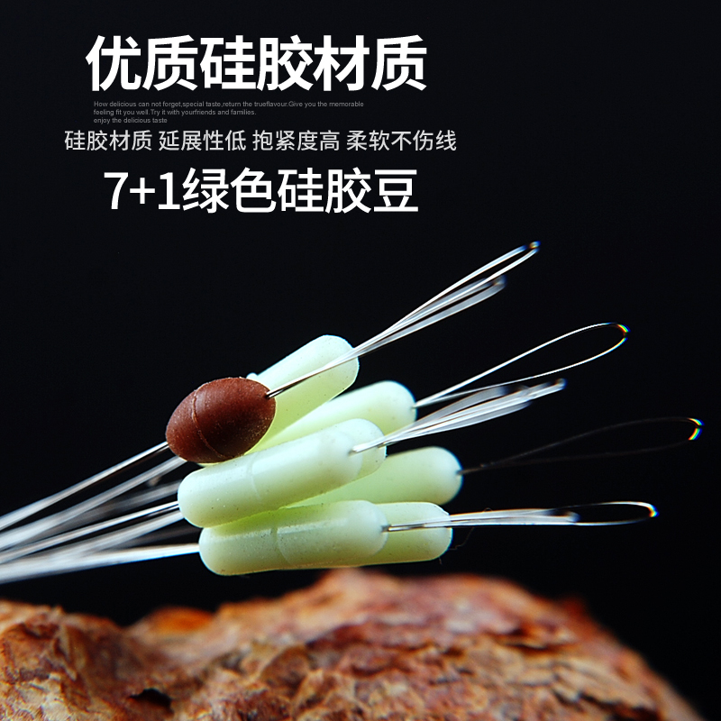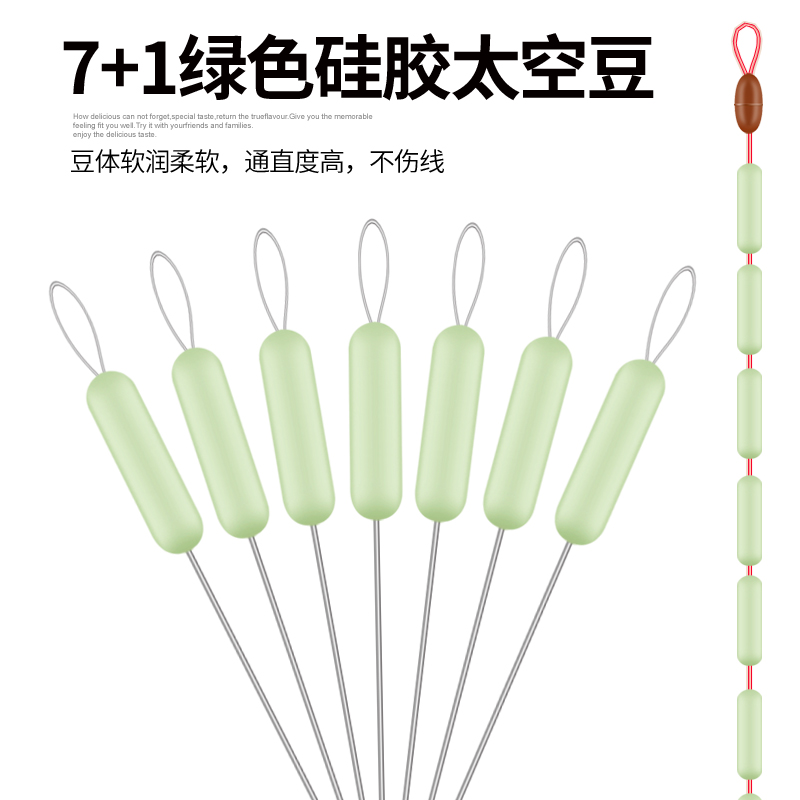 Green Silicone Gel 7 1 Space Bean Cylindrical Competitive Lake Bank Black Pit Line Group Bean Suit Bulk Fishing Accessories