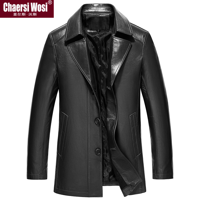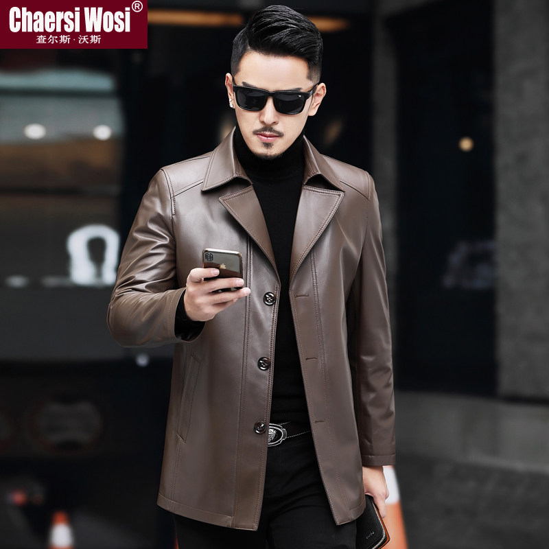 Haining leather leather jacket men's sheepskin jacket medium and long version suit lapel windbreaker autumn and winter thin middle-aged jacket