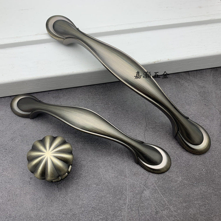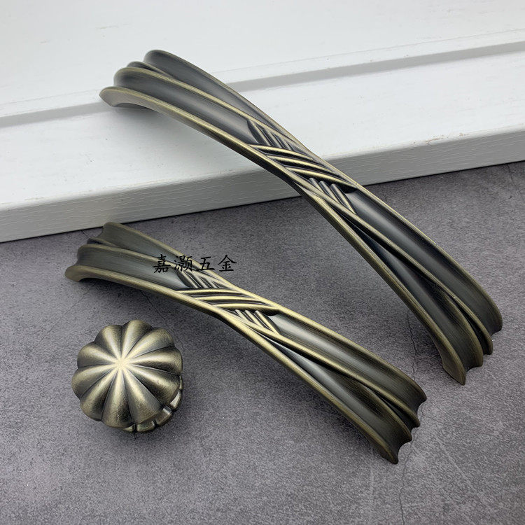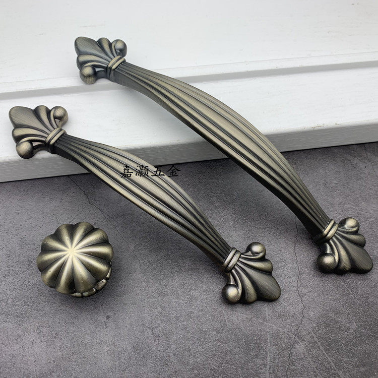 Upscale European-style solid matt bronze antique bronze antique drawer handle floral-style retro cabinet door handle