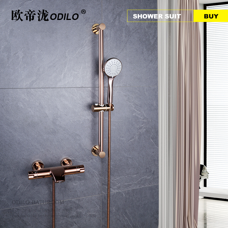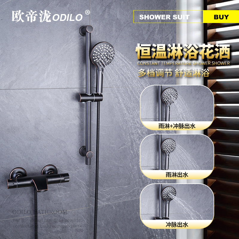 Oudilong all copper smart thermostatic bathtub faucet simple shower shower hot and cold water matte black gold set