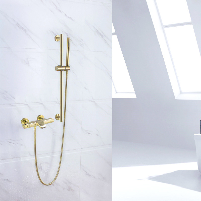 Wire Drawing Golden Shower shower head Kit without top spray Two-type extremely simple bathroom thermostatic full copper light luxury small family type