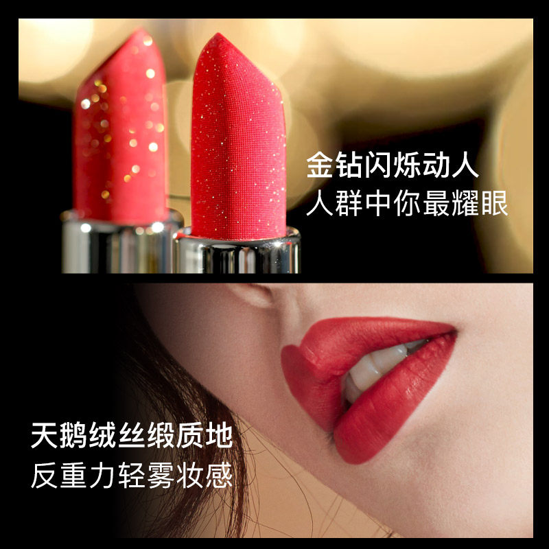 PlayBeauty Little Gold Diamond Lip Red Lip Balm Lasting not easy to fall VELVET FOGGY FACE WOMEN STAR FLAIR RETRO MAKEUP COSMETICS