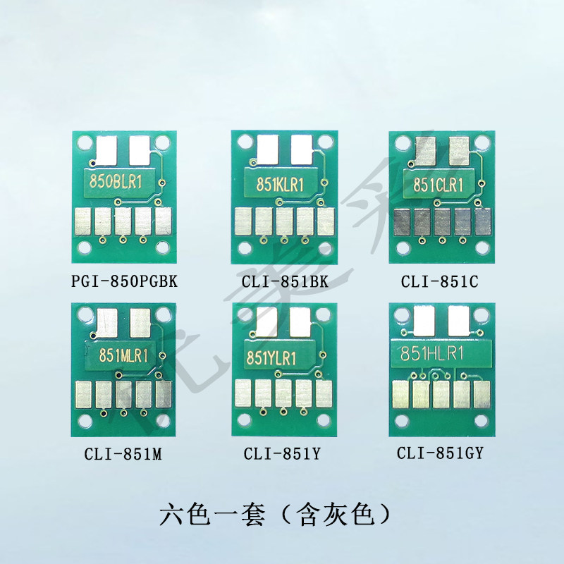 PGI-850 Big Black PGBK CLI-851 Little Black BK CLI-851 Blue C CLI-851 Red M CLI-851 Yellow Y CLI-851 Gray GY Five-Color Set (Fill Chip Plug-in Reset) Six-Color Set (Fill Chip Plug-in Reset) Five-Color Set (With Chip Open Cover Reset) Six-Color Set (Connected Chip Open Cover Reset)