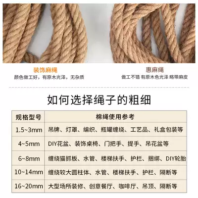 Hemp rope Rope ornament Hand woven tied rope Wire mesh Fine thick diy material woven color vintage wind rope