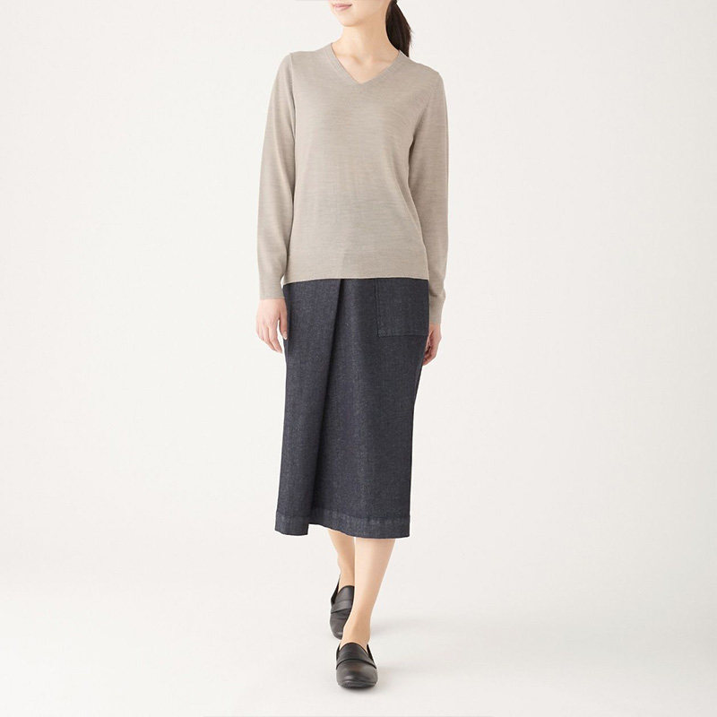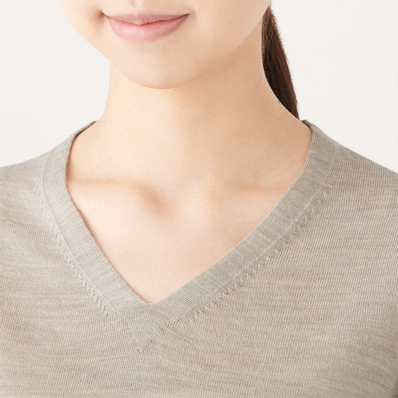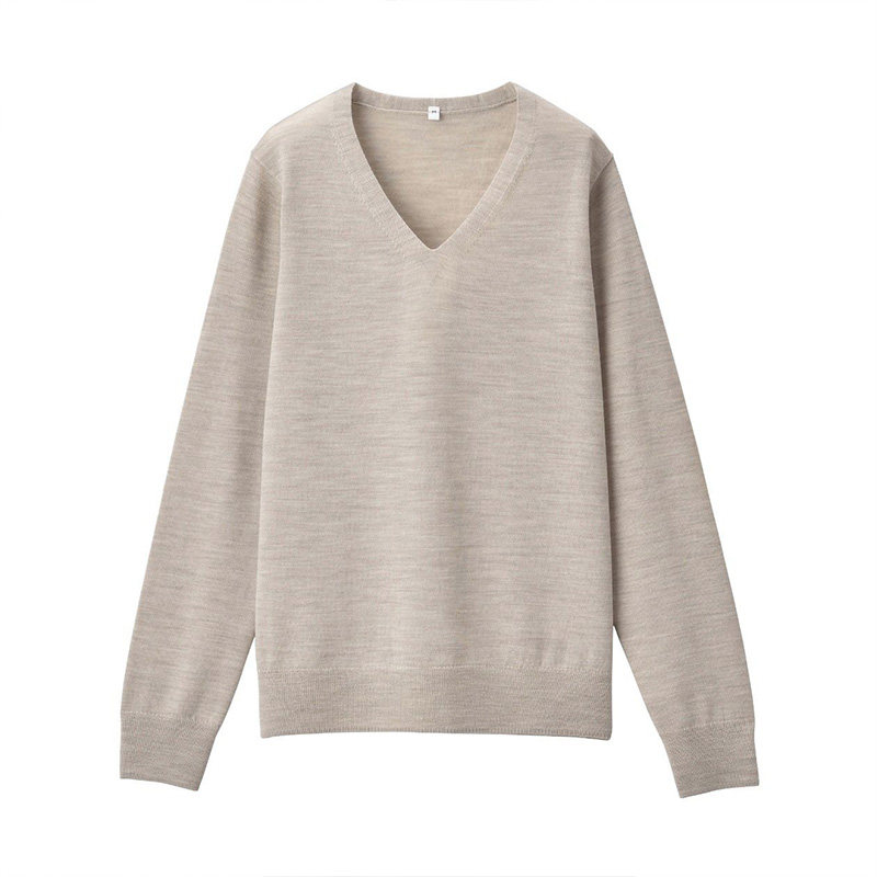 No-print good products MUJI Women's wool mulberry silk V collar sweater