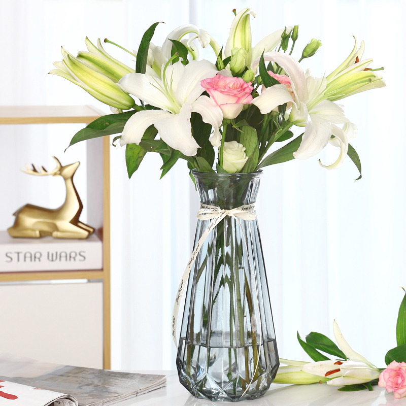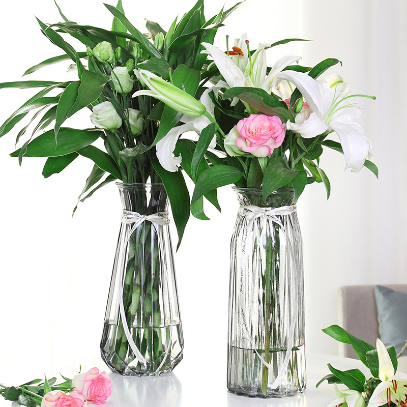 King-size glass vase Transparent hydroponic bamboo lily transfer vase Living room flower arrangement European Vase ornaments