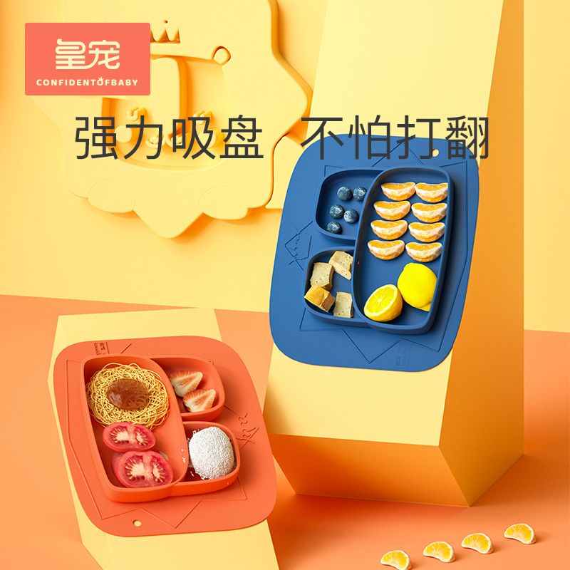 Baby dinner plate children's tableware household cartoon silicone anti-drop type baby food supplement set grid plate