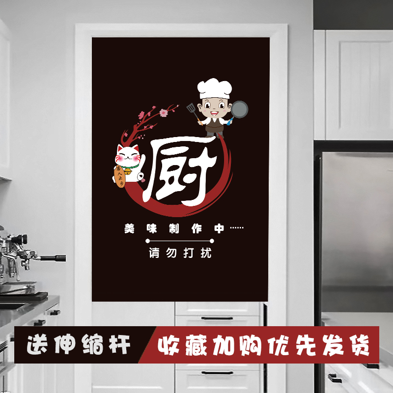 Custom kitchen cloth door curtain restaurant partition curtain hotel back kitchen half cut curtain anti-fume shield free punching curtain
