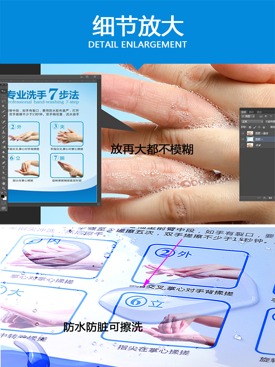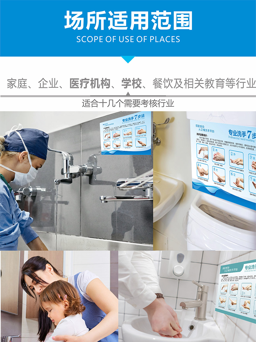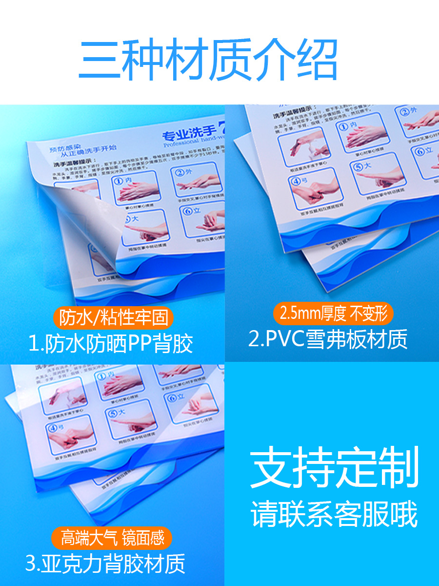 Hospital Clinic Kindergarten Standard Six Steps Seven Steps Wash Hands Method Step of Waterproof Wall Stickler 7 Steps Wash Practices Children Cartoon Stickers Anti-Acrylic Custom Notice Stickers Mark Signs Cards Reminder Cards