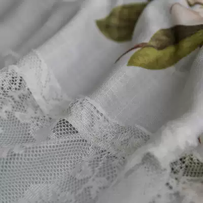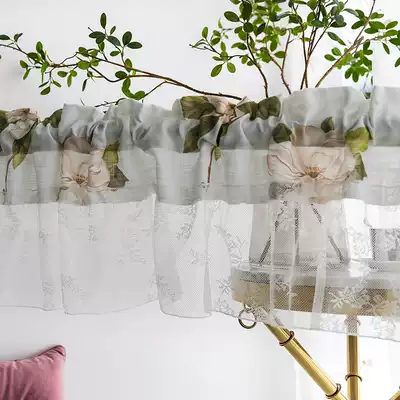 Nordic cotton and linen splicing American pastoral door curtain half curtain rod short door curtain Half curtain curtain cabinet lace curtain
