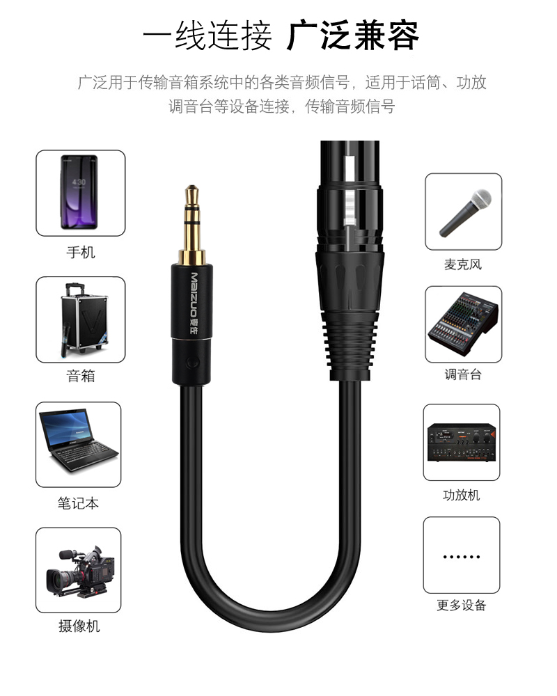 Microphone microphone connection line audio line 3 5mm to Canon mother public mixer line mobile phone computer capacitor