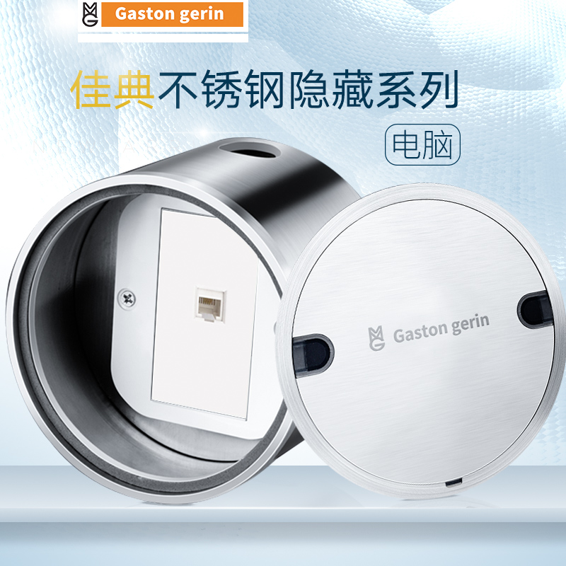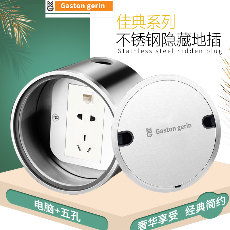 Ultra-thin hidden floor plug Stainless steel waterproof floor socket Round full copper double five hole floor socket Silver