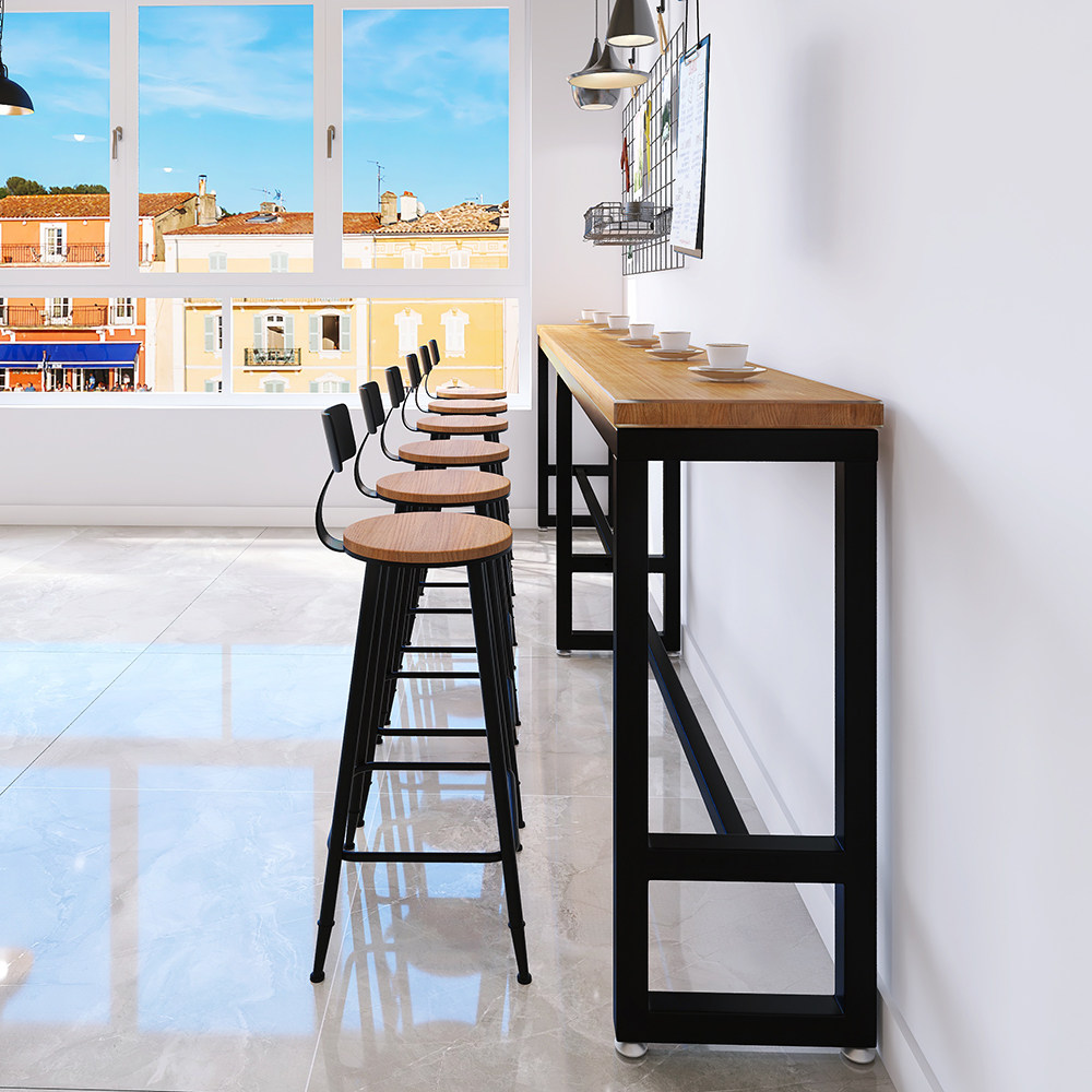 Iron solid wood window high table milk tea shop balcony bar table table chair combination cafe bar long table 1201