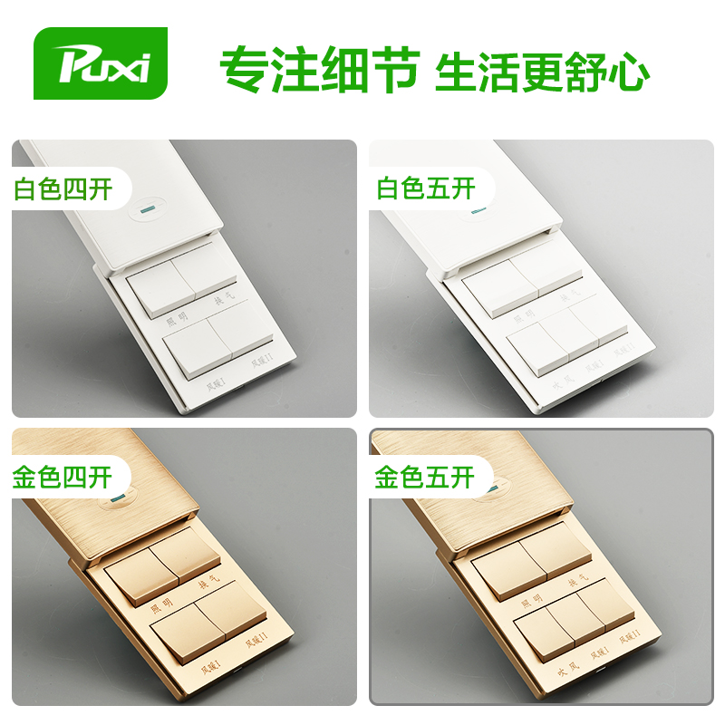 Yuba switch Five-open makeup room switch panel 5-open household 4-open Yuba light switch Four-in-one bathroom switch