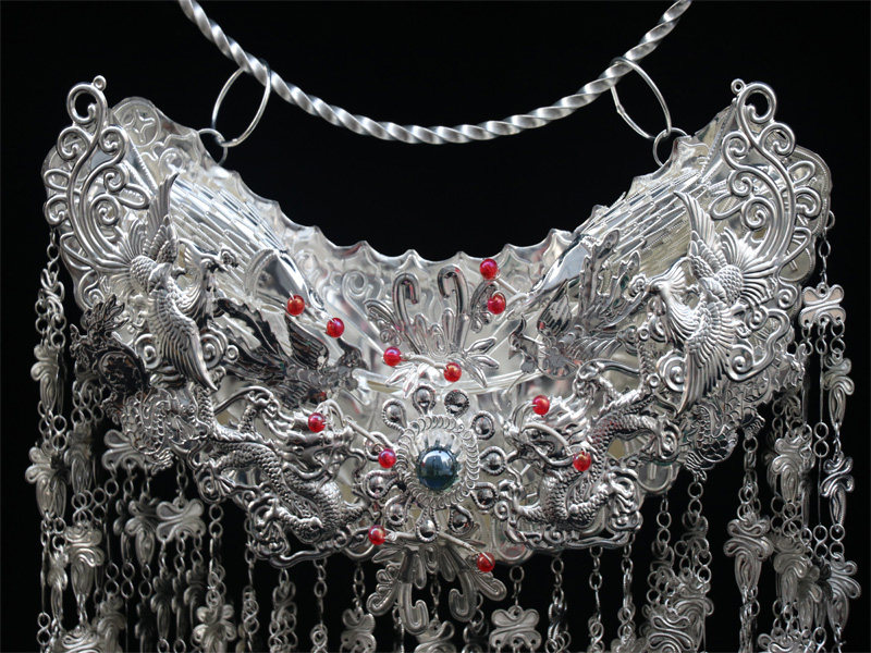 Guizhou Miao Clothing Silver Jewelry Headwear stage Performance Costume Hat Necklace Earrings Handmade Necklace Hat Slim silver
