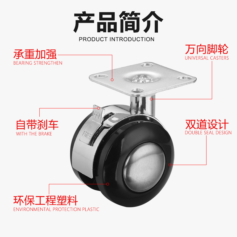 Caster flat wheel mute universal wheel office swivel chair wire tooth wheel 2 inch small trailer pulley with brake wheel