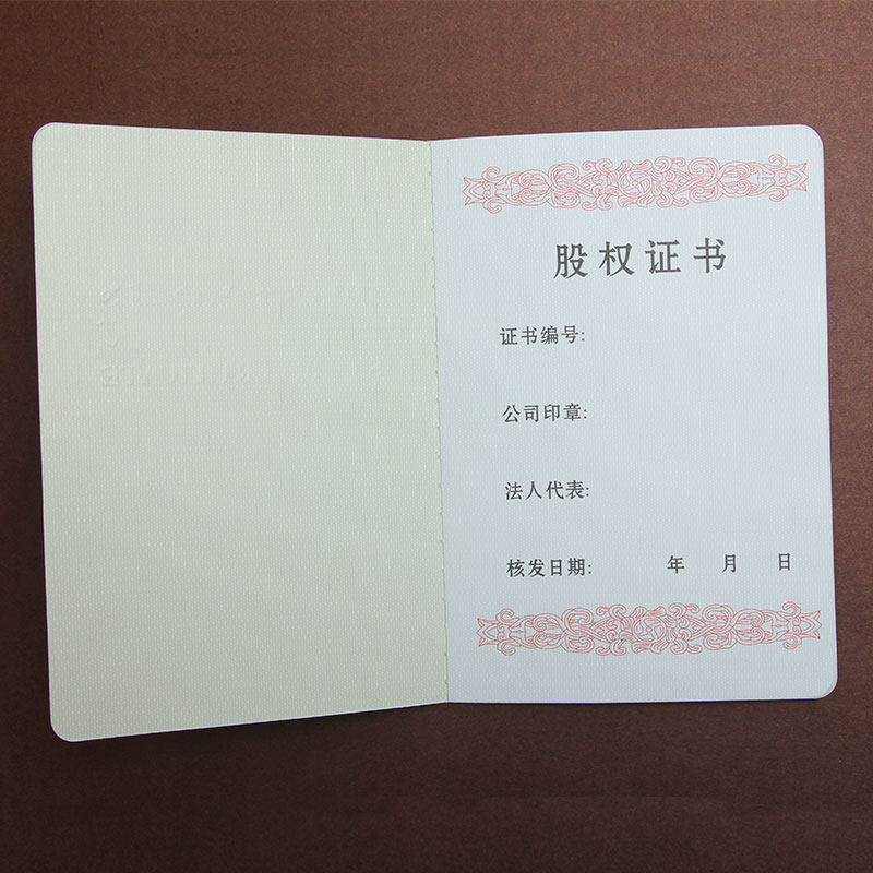 Leather Face Special Paper Equity Certificate Paper Shareholder Certificate Ben 136X199mm