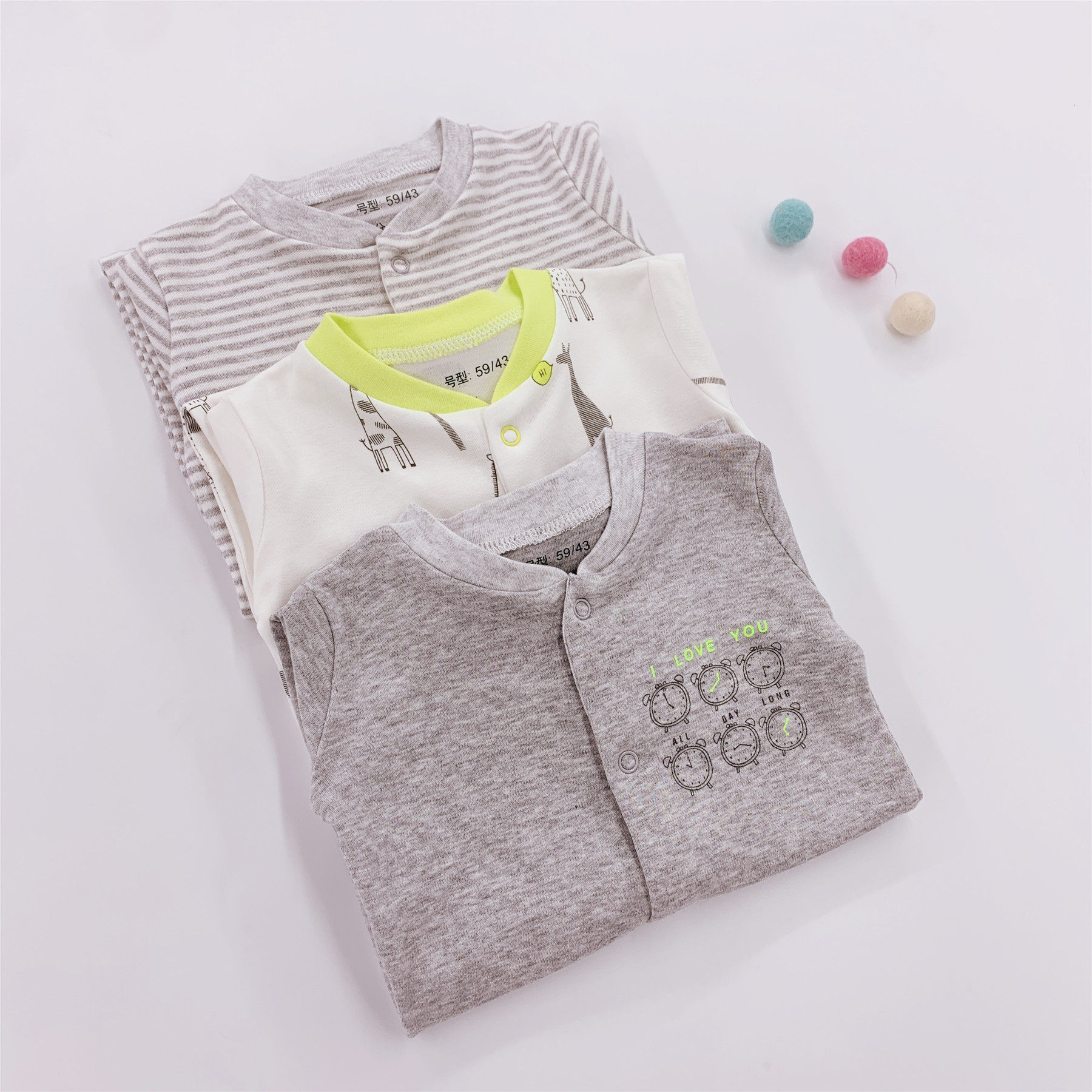3 pieces of clothing newborn baby clothes spring and autumn thin section long climbing girl khacoat pure cotton long sleeve male baby even body sleepwear