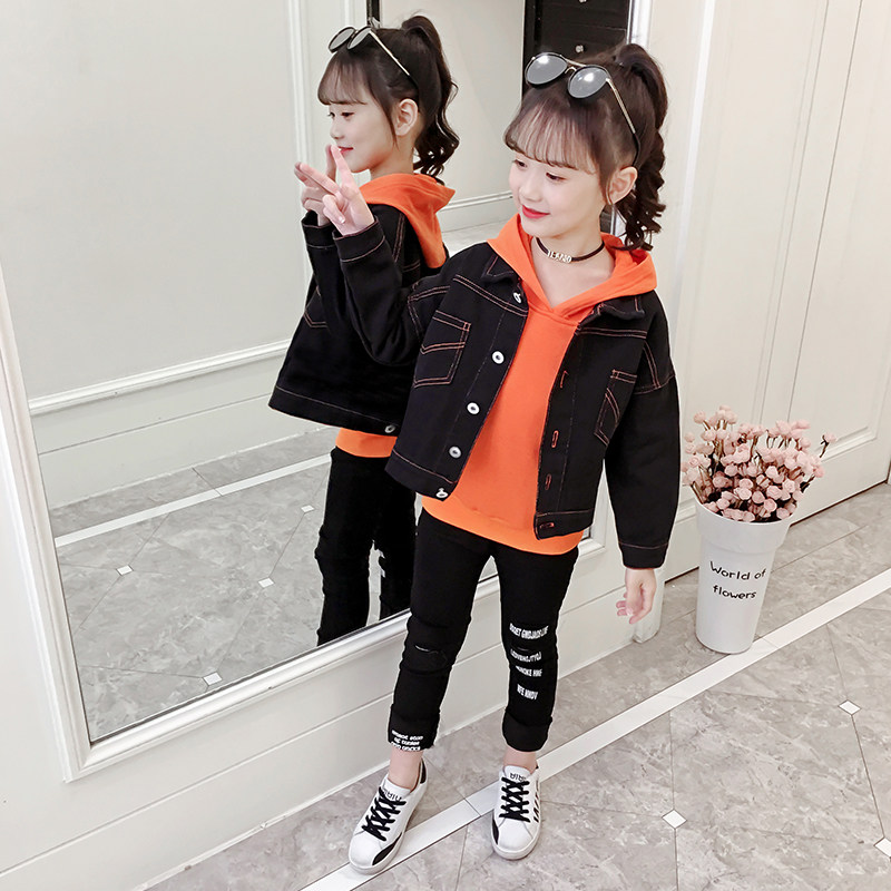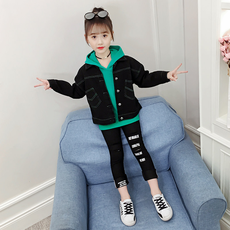 Amoy Maimai-denim jacket sweater three-piece set