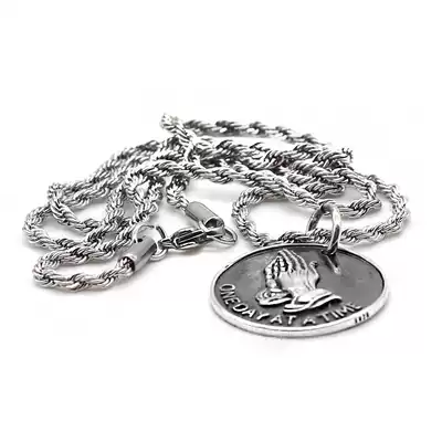 The Praying Hands Sterling Silver Prayer Hand Necklace Men Pendant Hip Hop Round Tide Valentine Gift
