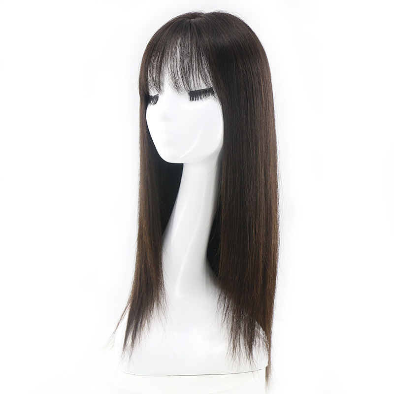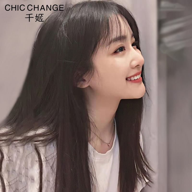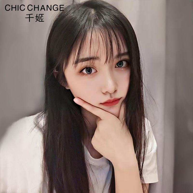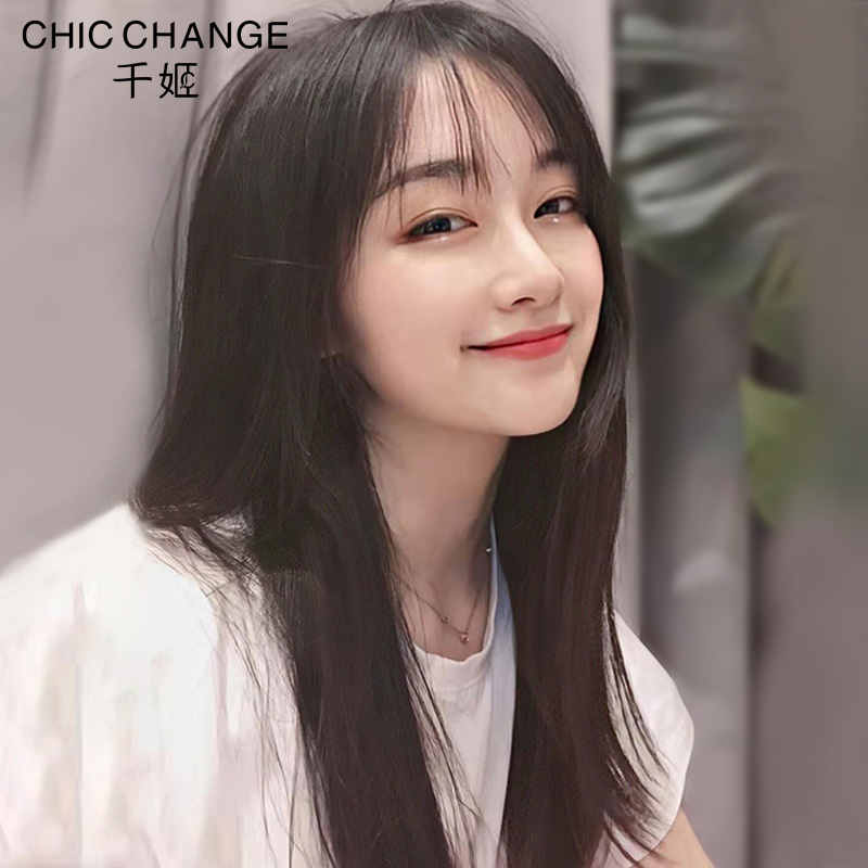 Qianji wig female long hair natural full head cover type real hair hair set Net red air bangs real hair long straight hair