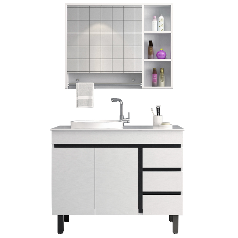 Includes flushing basin with bathroom mirror cabinet with faucet