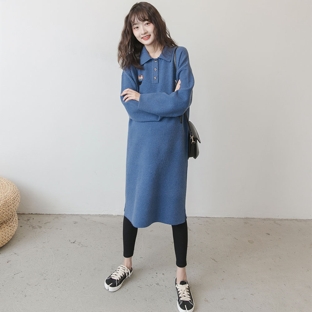 Pregnant women autumn and winter coat Korean fashion knitted dress hot mom casual long version straight skirt pregnancy thickened sweater