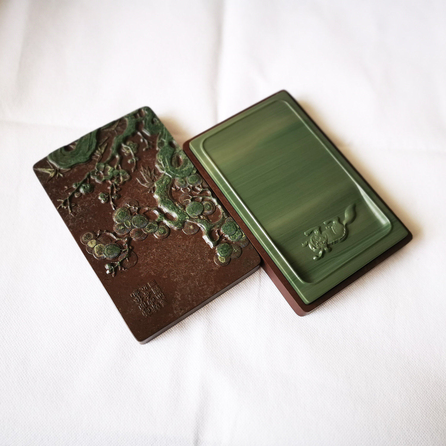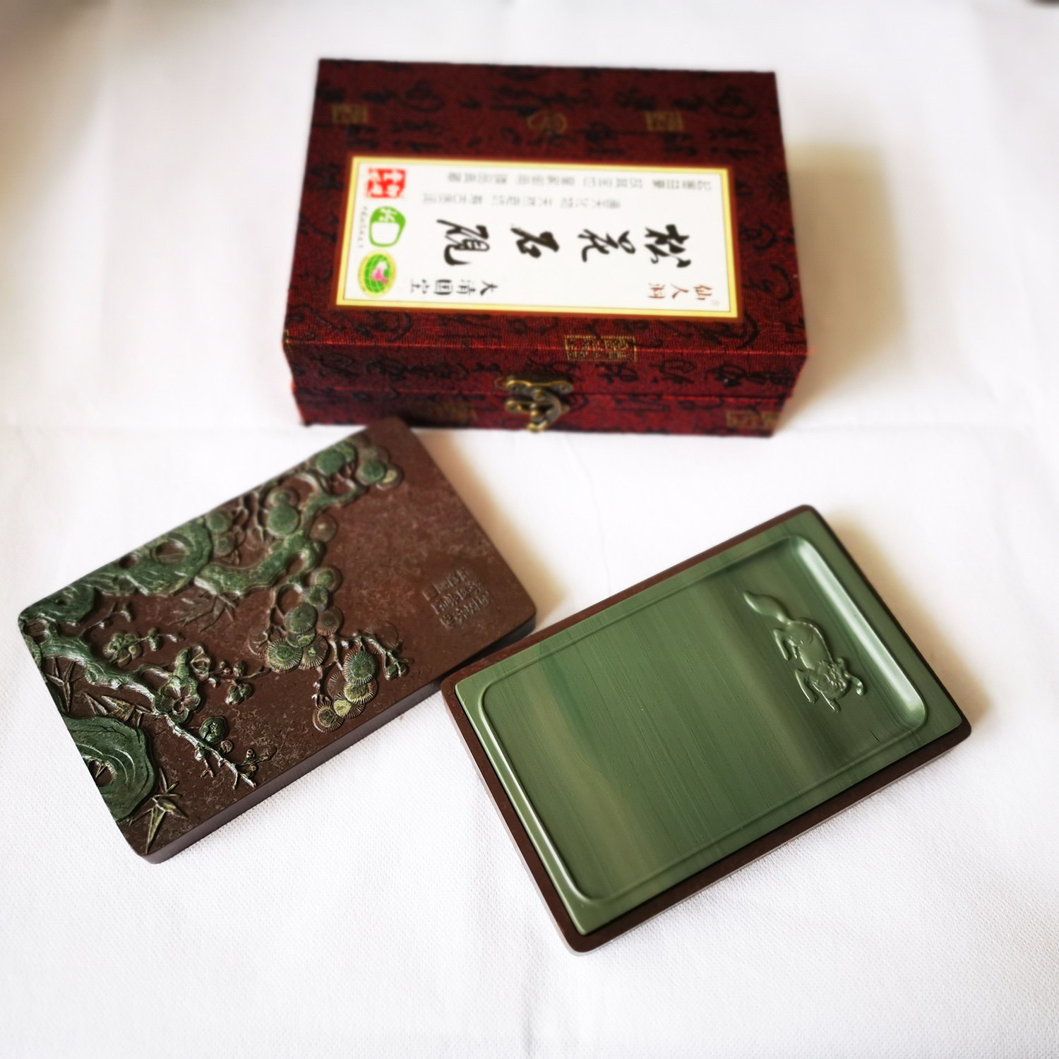 Inkstone Pine flower Inkstone box Inkstone Year-old cold Sanyou Wenfang Four treasures Re-engrave The Palace Museum Calligraphy Grinding ink Royal Inkstone Hall