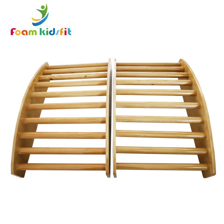 Wooden balance seesaw Sense Training Equipment Wooden shaking double rod rod rod half moon rock toy