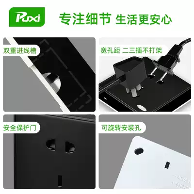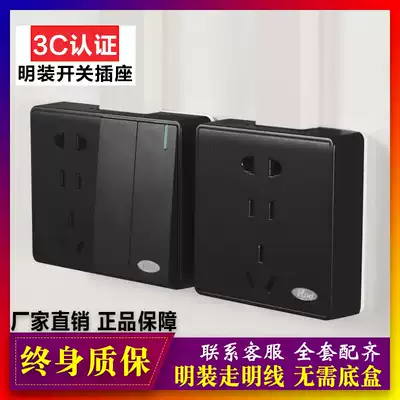 Black open switch socket panel ultra-thin open wire box two two three plug wall 7 seven seven hole socket with base