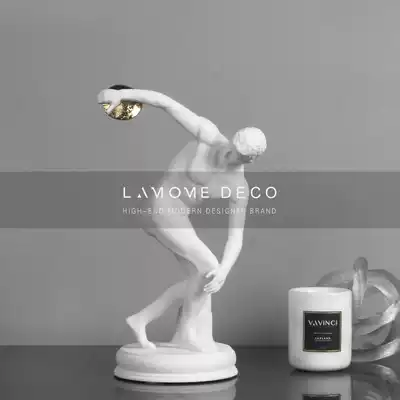 Modern creative sports figure sculpture ornaments throwing discus black white Study Office Home Furnishings