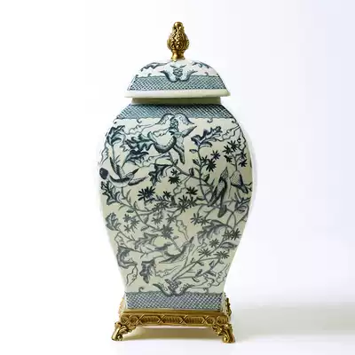 European-style blue and white ceramics with copper general altar Neoclassical living room entrance general tank handicraft decoration