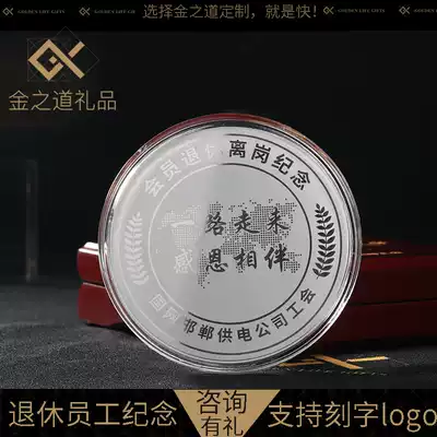 Jinzhido employee retire souvenir custom silver coin crystal trophy commemorative coin lettering logo