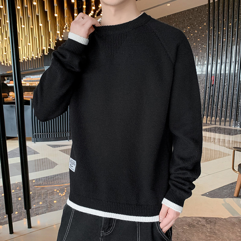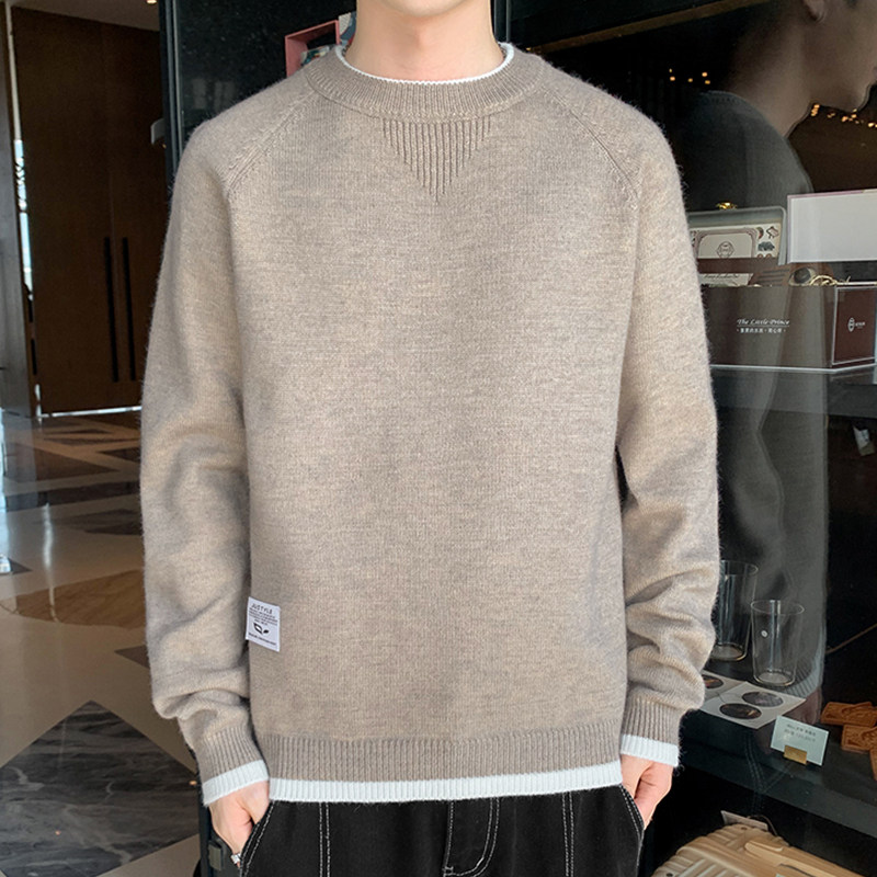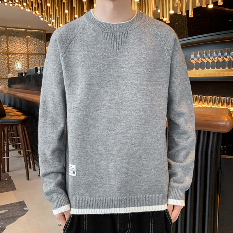 Round neck sweater men's autumn and winter New loose sanitary clothing solid color long sleeve bottomed sweater Korean version of thick clothes