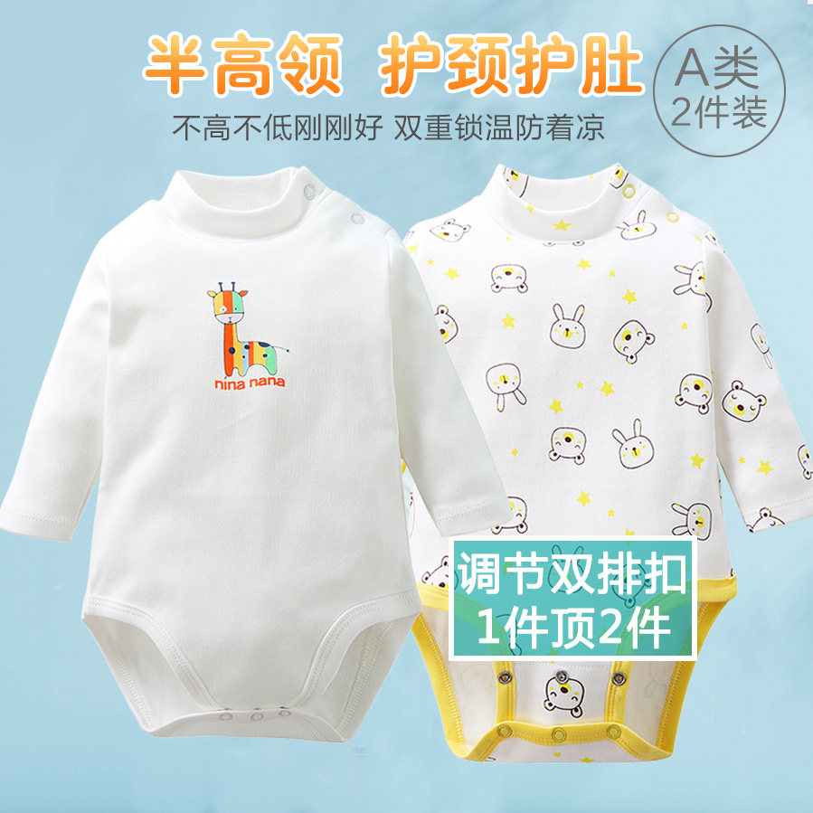 Baby's half high-necked rompers spring autumn and winter warm cotton baby mid-neck underwear large size one-piece pajamas