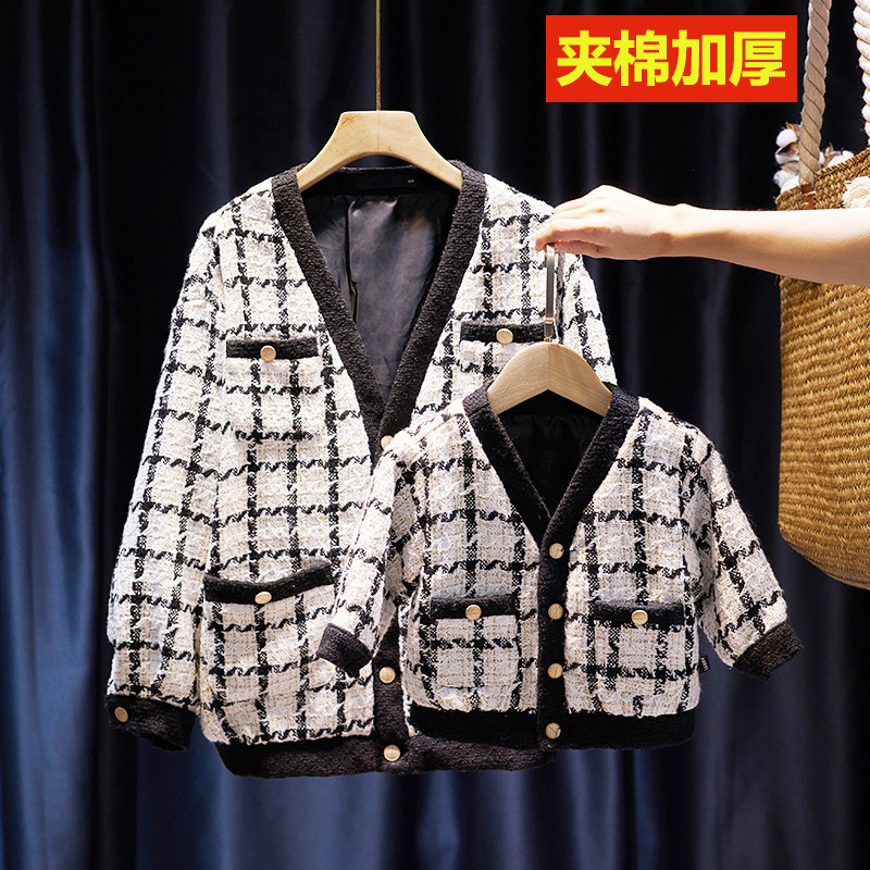 Net red parent-child outfit 21 autumn and winter new girls small fragrance style foreign style fashionable long sleeve plus cotton padded coat mother and woman